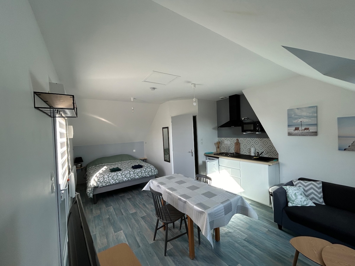 Welcome to our charming 25 m² wooden studio "Le Petit Chalet de la Plage", carefully decorated. Ideally located just 300 meters from Portbail Beach, this independent accommodation offers a peaceful and intimate setting, perfect for a seaside getaway. Nestled on a private plot where our family home is also located (also offered for rent), this small house is carefully managed by a concierge in our absence.