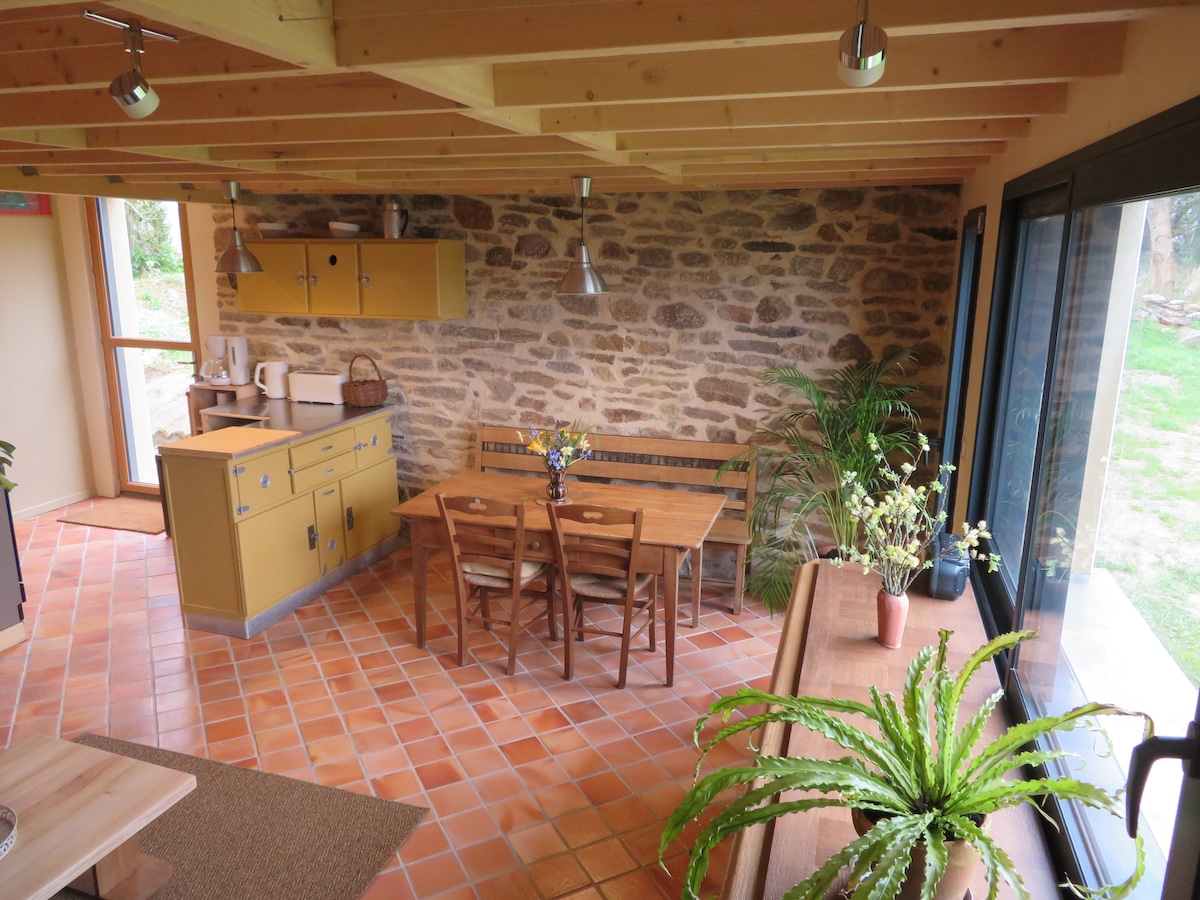 Furnished Tourism Rating *** Located in the Concarnoise countryside, 4 Degrees West is a cottage for 1 or 2 people, in eco-building, quiet, in a hamlet, 6 km from the city center of Concarneau, 7 km from the village of Forêt-Fouesnant (Breton Riviera), 3.5 km from the famous GR34, 2 km from the green way Concarneau-Roscoff and 3 km from the RN165. Ideal if you prefer tranquility, the cottage is adjoining the owner’s house with independent access and private parking.