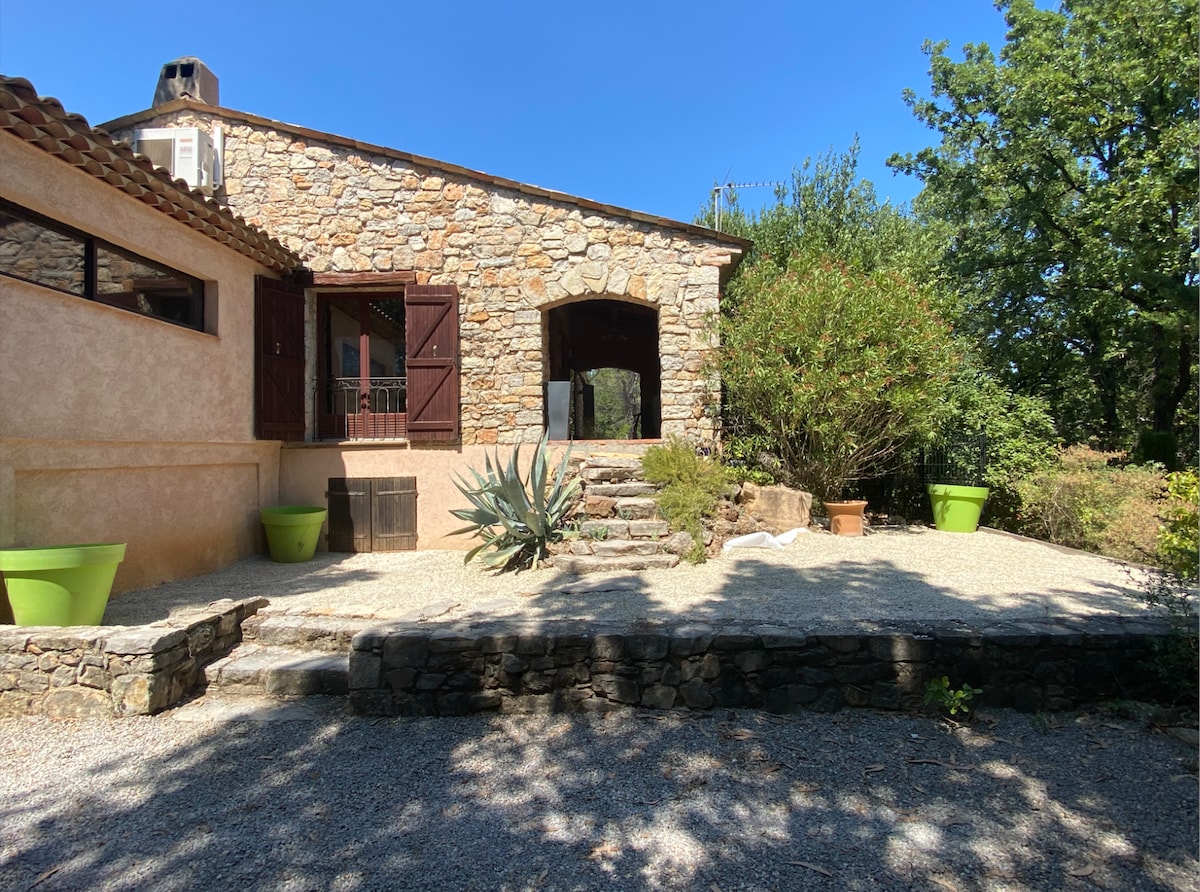 In the heart of Provence, this stone house will welcome you in a natural charming private property on the outskirts of Fayence. Located in a quiet residential area on a fenced tree-filled park of one hectare, it has a superb private terrace overlooking the villages of Fayence and Caillan. Comfortable and tastefully furnished, this air-conditioned house is located between the sea and the mountains less than an hour from the airport of Nice the Draguignan station.