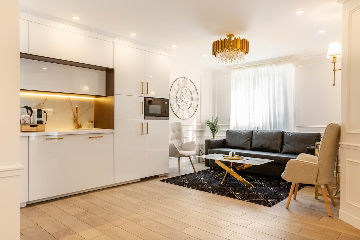60 m2 air-conditioned apartment with high-end layout in the very center of Paris, historic district of Montorgueil, famous for its food shops, small bistros and restaurants. The apartment is located on the 1st floor of a building on a very quiet street. It was refurbished in 2023 by a famous architect and therefore very well arranged with very high-end amenities. You will be like in a hotel suite with the charm of a real Parisian home.