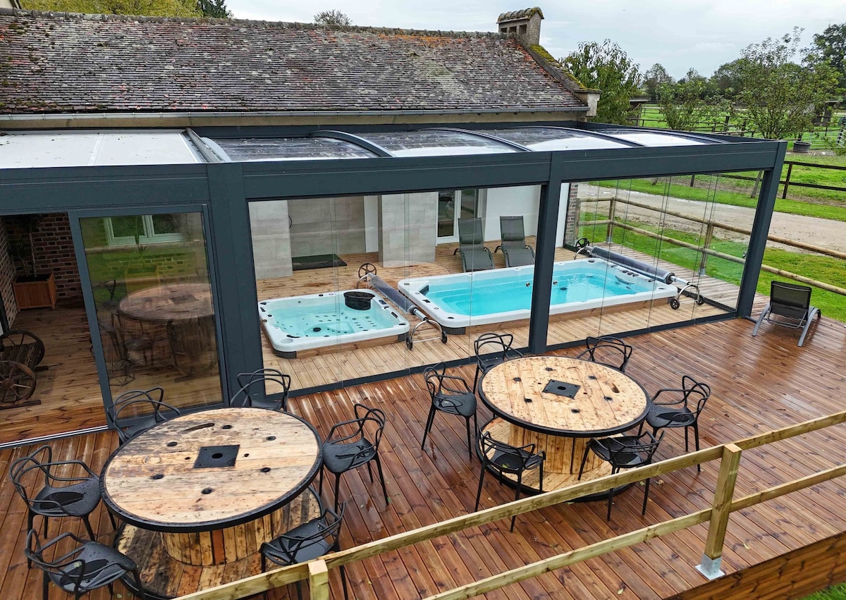 Tropical and romantic weekend with swimming pool and private Jacuzzi in the Normandy countryside. Gîte for lovers and nature, offers you the opportunity to cut yourself off from your daily life thanks to its originality. Beautiful large terrace facing the orchards. Jacuzzi facing nature. The mezzanine room overlooks the pool. Several activities allow you to never get bored, jacuzzi pool, sports machines, deckchair, walk in the fields. Only for two adults without children.