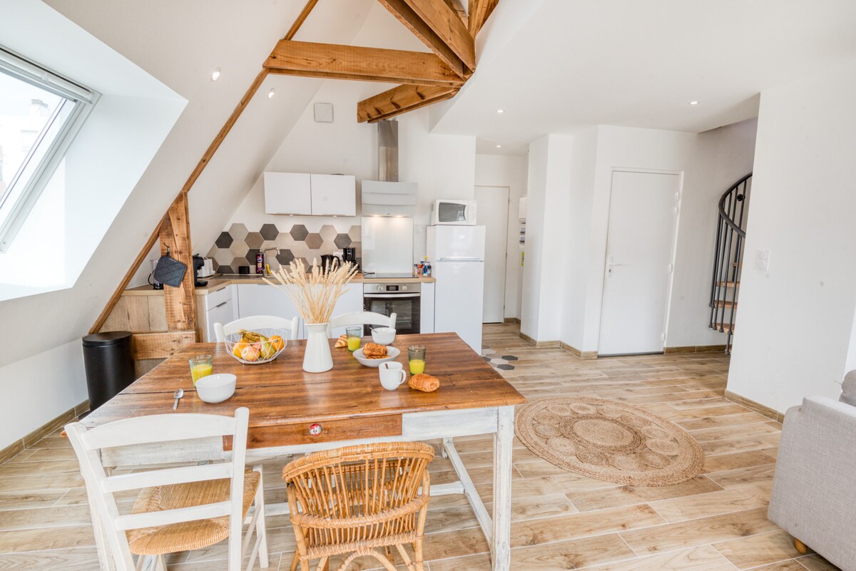 ✅ Tarif tout inclus ! Frais de ménage, draps et serviettes, lits faits, gel douche, café & thé le 1er jour, kit d'entretien, assistance 7/7. Idéal pour séjourner à Lorient, venez profiter de ce grand Duplex rénové au 3ème et dernier étage. Situé à 50m de la gare TGV, dans une rue agréable avec commerces et restaurants, le centre ville est à 10 min à pied. Vous disposez d'un espace de vie agréable, une cuisine ouverte entièrement équipée et une belle chambre cocooning en duplex.