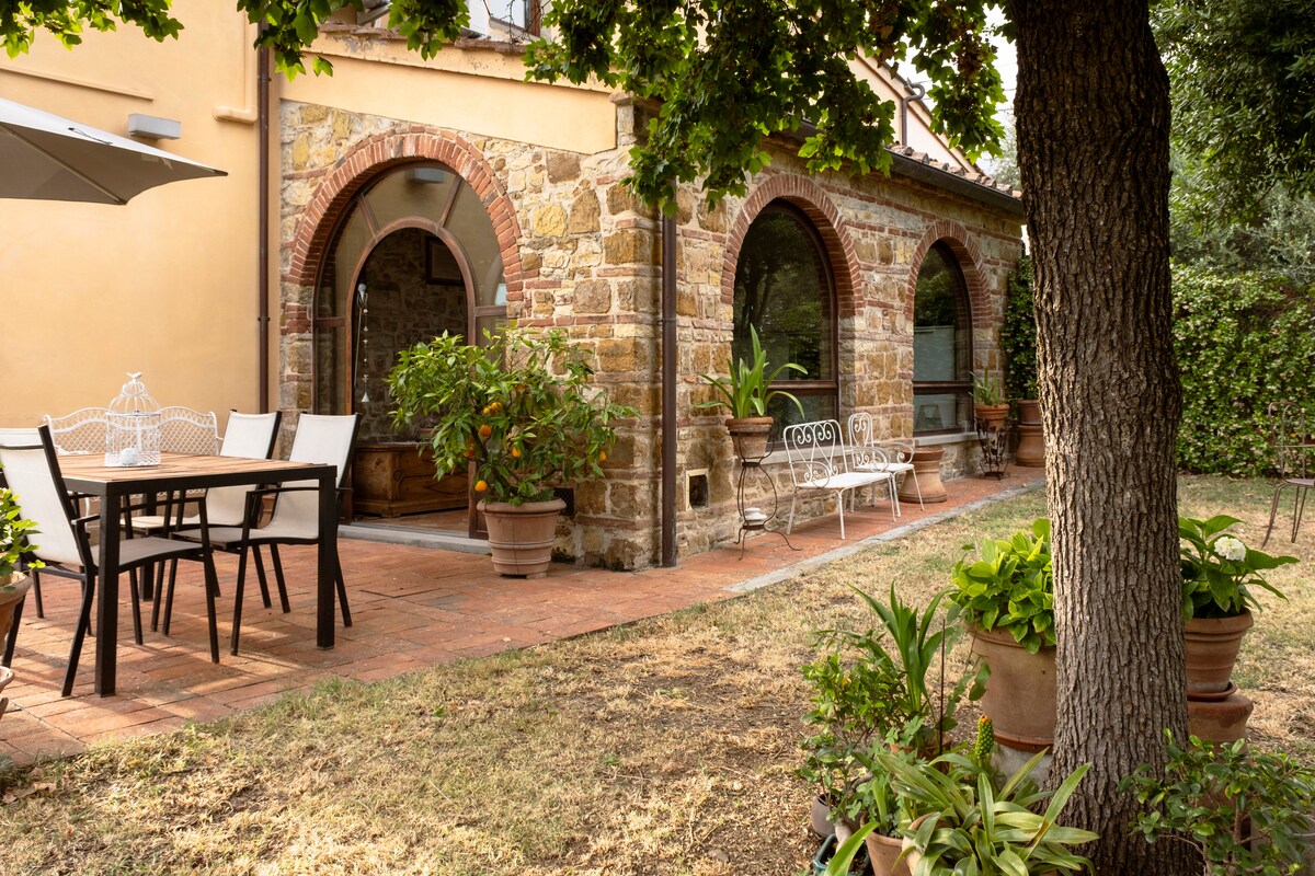 Agriturismo Il Colle is located on one of the Chianti hills. The property has been completely renovated, overlooking the Chianti valleys and enjoying splendid views of the surrounding hills and the city of Florence. The apartment is completely independent, on two internally connected floors, and features a private garden lined with centuries-old oaks and Tuscan cypresses. The restoration maintained the original Tuscan architectural style of rural barns.