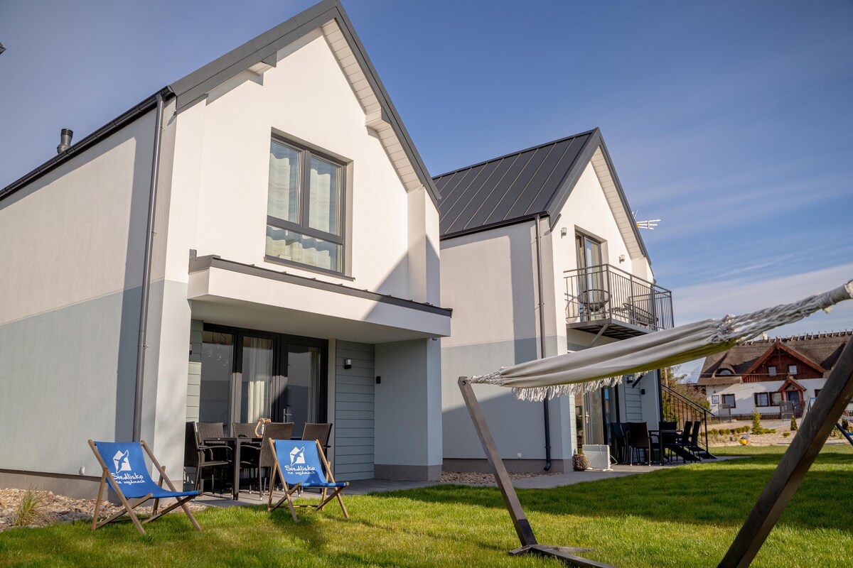 Treat yourself to rest and quiet. Our resort consists of 6 houses with an area of 80 m2. We are located in a tiny Kashubian village, by the forest and by the river. Nearby are the most beautiful beaches in Poland. Nature, peace and quiet reign here. A perfect place to get away from noisy cities and celebrate special moments.