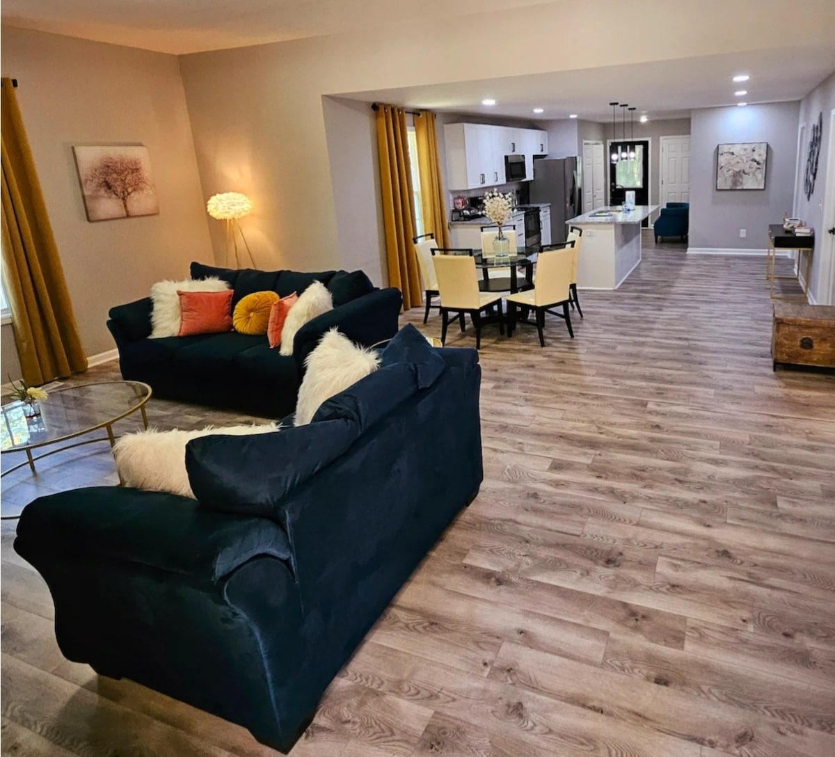 The Bull's Retreat is a awesome space with 2 King Beds and 2 single beds, ideal for travelers or getaways. It's centrally located in a peaceful neighborhood near Ft. Bragg, Fayetteville & Sanford. It's great for reconnecting with family and friends. The open-concept living space includes a fully equipped kitchen, breakfast bar, dining area, and 3 bedrooms, 2 bathrooms. You can relax around the fire pit Note: Owners reserve the garage for personal use only; it isn't accessible to guests.