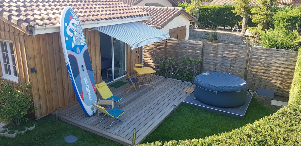 ❤️ Arcachon Bay ❤️ As a couple or with a baby, you can enjoy this... no, actually without children because with them, for cocooning, marshmallows on the brazier, and romantic meals it's more complicated 😊!! That said, we can help you out with everything from a travel cot, changing table, and even babysitting! Jacuzzi all summer! and only for promotional dates: jacuzzi with private access reserved just for you❤️! extra charge to be paid on site 😊