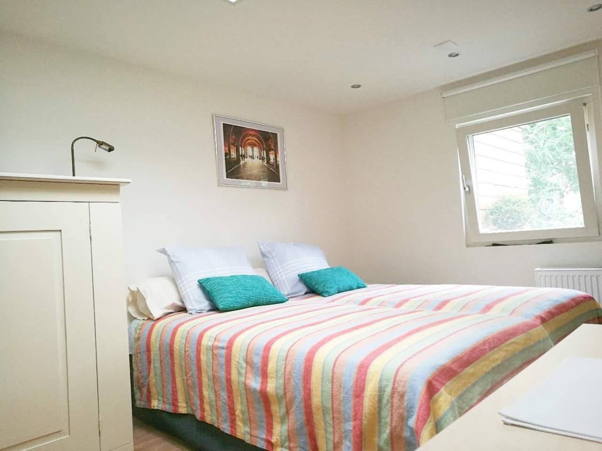 Bright studio apartment in quiet residential neighbourhood 10-15 minute walk to Central Station. Cafes nearby, and more in historic downtown Leiden 20-minute walk. Private entry, bathroom, deluxe mattresses, table, stools. Own well-equipped pantry, fridge, microwave, toaster, etc. Own washing machine, storage. Beautiful forested park, pleasant tea house. Efficient multiple trains hourly to Airport (16 minutes), Amsterdam (40 minutes), beach (bus 20 minutes). Free & paid parking available.
