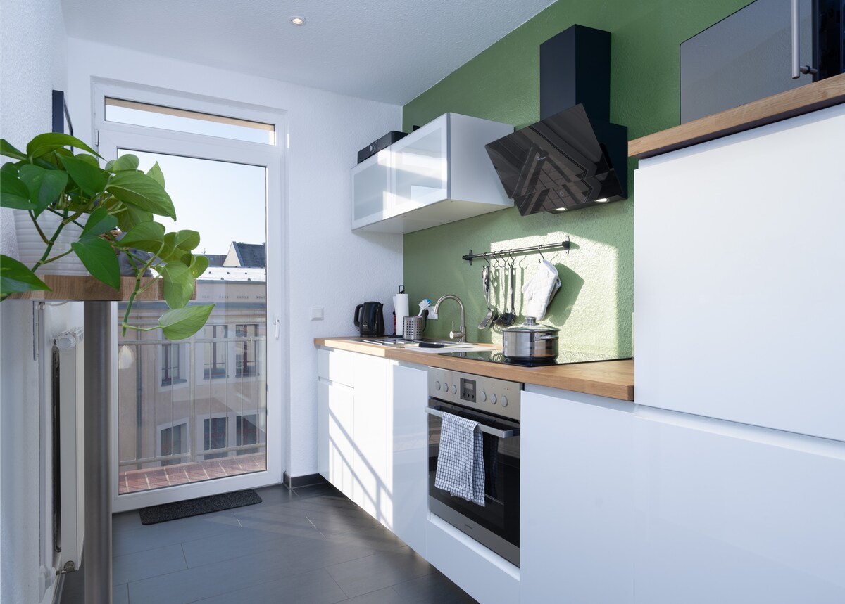 Modern Design Apartment Leipzig| Balcony & Comfort