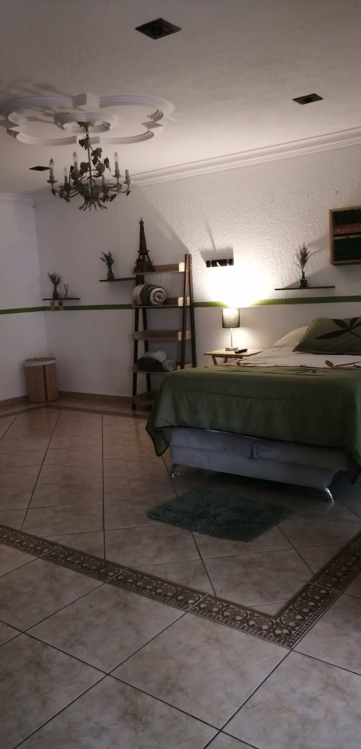Escápate a un Residencial Campestre en León, Gto. Relájate en este espacio tranquilo, combinando la comodidad de la ciudad con la serenidad de un entorno rodeado de vegetación. Características del Espacio: Alojamiento moderno e independiente Cama king size, toallas, agua caliente, Wifi y persianas Ambiente sereno y familiar Ubicación: Mulza Outlet: 10 min Puerto Interior: 18 min Aeropuerto: 18 min Centro de León (Expiatorio): 25 min Poliforum: 20 min