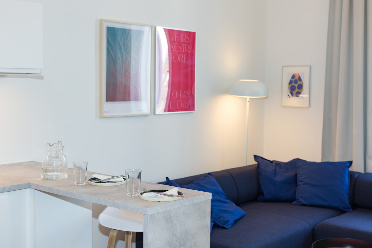 Designer studio apartment within a newly renovated historic landmark building (“Palais”), originally built in 1864. Set on a famous boulevard in Leopoldstadt’s 2nd district, you’re steps from hip restaurants, Augarten Park, Donaukanal nightlife and the city center—including St. Stephen’s Cathedral—all within walking distance. The U1 subway stops right in front of the building. A beloved modern coffee shop downstairs serves excellent pastries and sandwiches, popular with locals and expats alike.