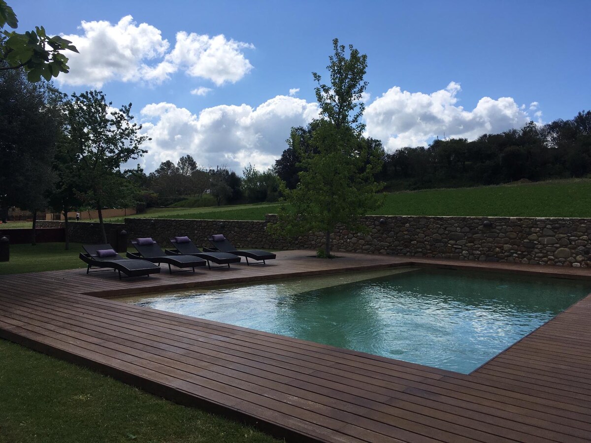 Buscas una escapada rural donde la paz y la desconexion sean las protagonistas?Esta masia es un remanso de tranquilidad en el corazon de la zona protegida de les Gavarres,donde el tiempo parece detenerse y la naturaleza te abraza.Nuestros huéspedes lo confirman:Aqui se experimenta un auténtico efecto "cooconing".A tan solo 10 minutos de Girona,con su encanto histórico y vibrante oferta cultural y gastronómica