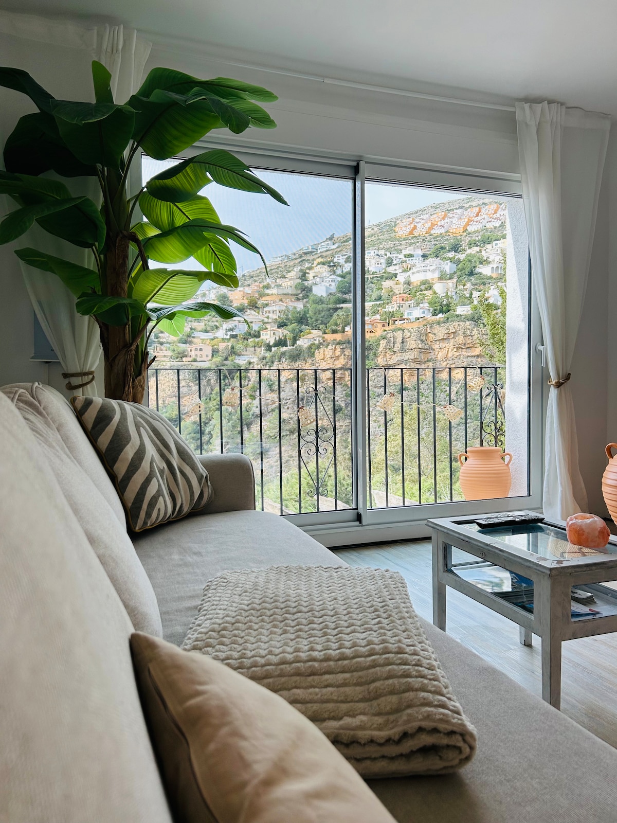 Welcome to Horizonte Azul, a cozy nest with astonishing views over the sea and the spectacular cliffs of the Moraig cove. Located in a pretty residential area, your two stylish rooms have individual entrances and are connected through a beautiful bathroom. On your private shaded terrace, an outdoor table and furniture w/sink allows you to prepare breakfast or cold bites. Activities? Book a private Pilates lesson on site, or enjoy hiking and other sports close by. We look forward to you staying!