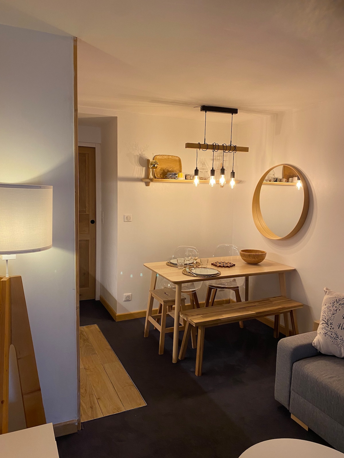 Located right in the center of the village and directly on the ski slopes. Suitable for 4 persons (1 clic clac bed & 1 mezzanine double bed). Fitted kitchen (induction, multifonction oven, fridge, filter coffee machine and Nespresso ). TV and fiber wifi. Balcony. Newly renovated bathroom in 2023.