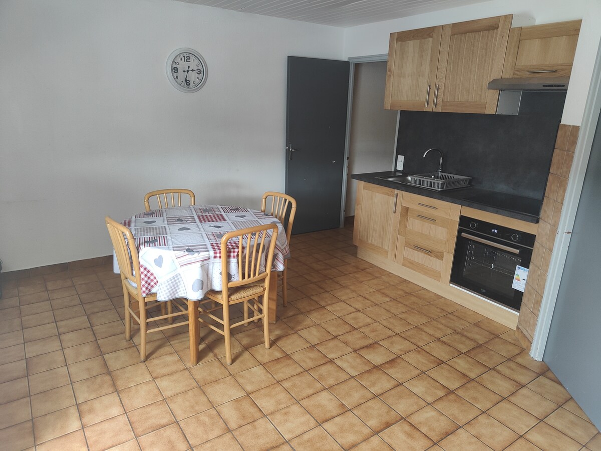 Enjoy a stylish new studio, fully equipped with independent entrance and single-story. Located in a quiet area, close to all amenities and the Swiss border. Enjoy stunning views of the Morteau Valley and a covered terrace. Possibility to have a continental breakfast basket.