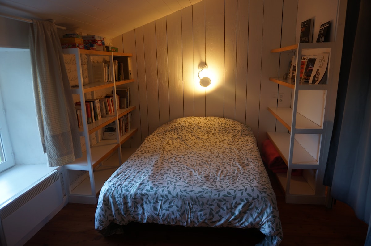 Charming renovated T1 apartment on the ground floor of our house, with an independent entrance including: - Equipped kitchen (microwave, hotplate, Senseo coffee maker, refrigerator, dishes...) - Shower room with toilet, without sink - Separate bedroom with double bed and TV + WiFi We provide bath towels as well as bed sheets, duvet, pillows. No smoking allowed Small pets are accepted. Listing located near all amenities.