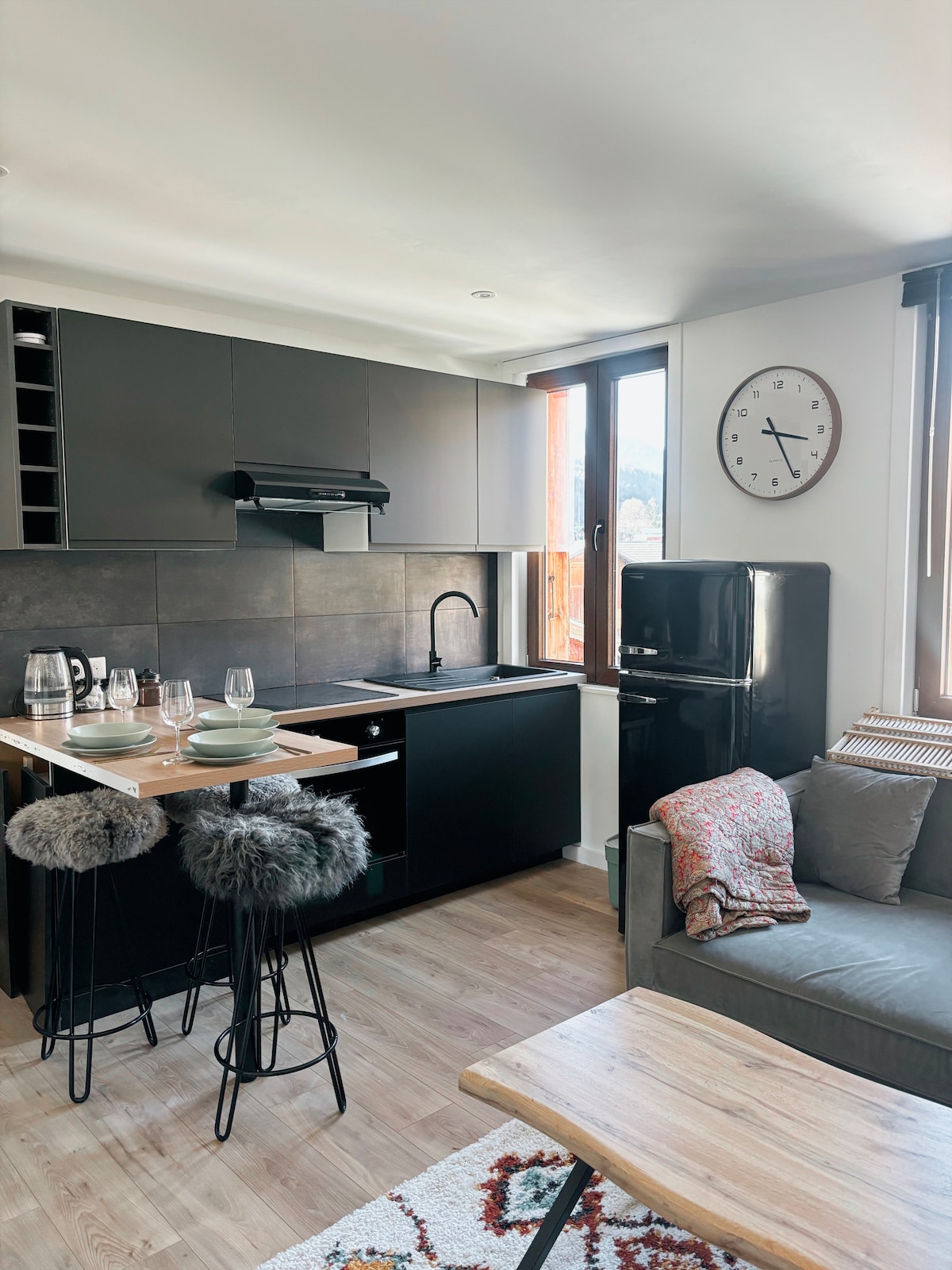 The 28 m2 apartment is located on the ground floor of our chalet in a quiet and preserved location. It is 3 km from the center of Morzine and close to the Prodains Express. In winter, it is possible to leave the chalet on skis to reach the bus stop towards Morzine or Avoriaz via free shuttles (stop close to the chalet). You can ski back from Avoriaz. Hiking trails from the chalet are accessible. Ideal for 2–3 people.