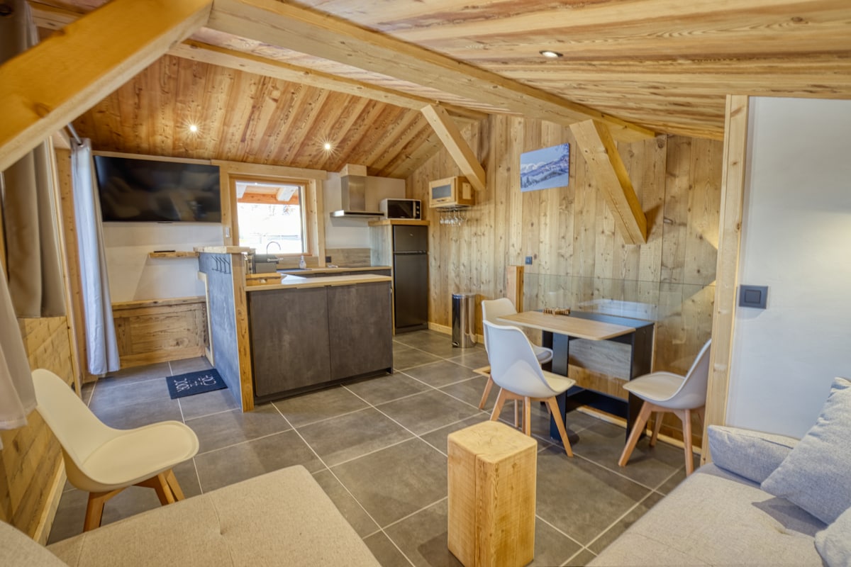 Enjoy a newly renovated mountain apartment, ideally located at the foot of the slopes and in the heart of nature, connected to Les Saisies, with stunning views of Mont Blanc and the peaks of Beaufortin, snowy or green depending on the season. Here, the mountain is experienced gently, to the rhythm of the seasons. Whether you come to relax in the great outdoors, read facing Mont Blanc, or enjoy the starry silence after a day outdoors, this place offers you a bubble of serenity.