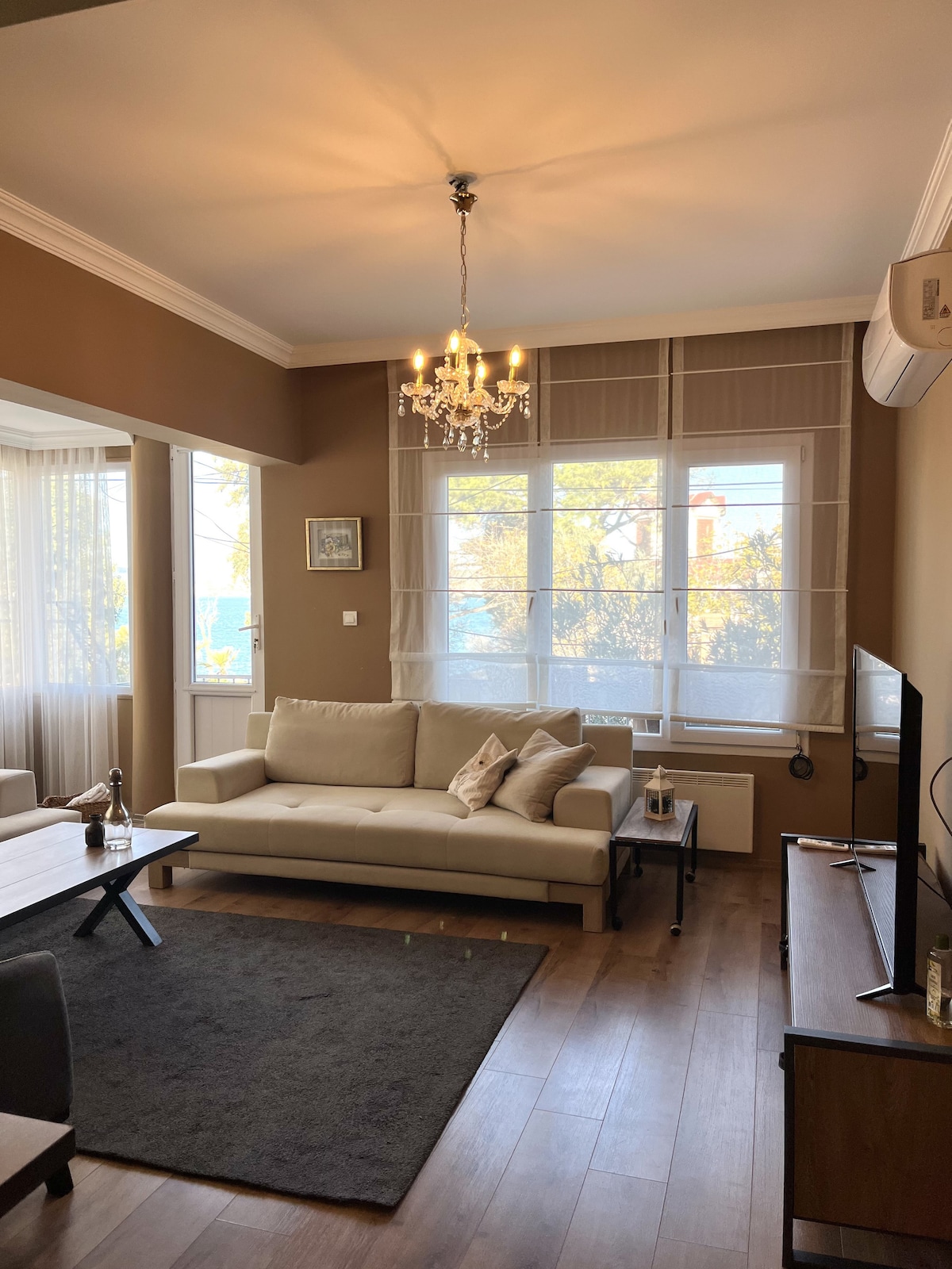 Fully renovated apartment with a wonderful view and a unique sunrise qt the most picturesque area of Mytilini. The appartment is almost 100 square meters and it can accommodate from 2 to 6 people. It has all the specifications for a comfortable stay for all family. Have fun with your family in this stylish space.