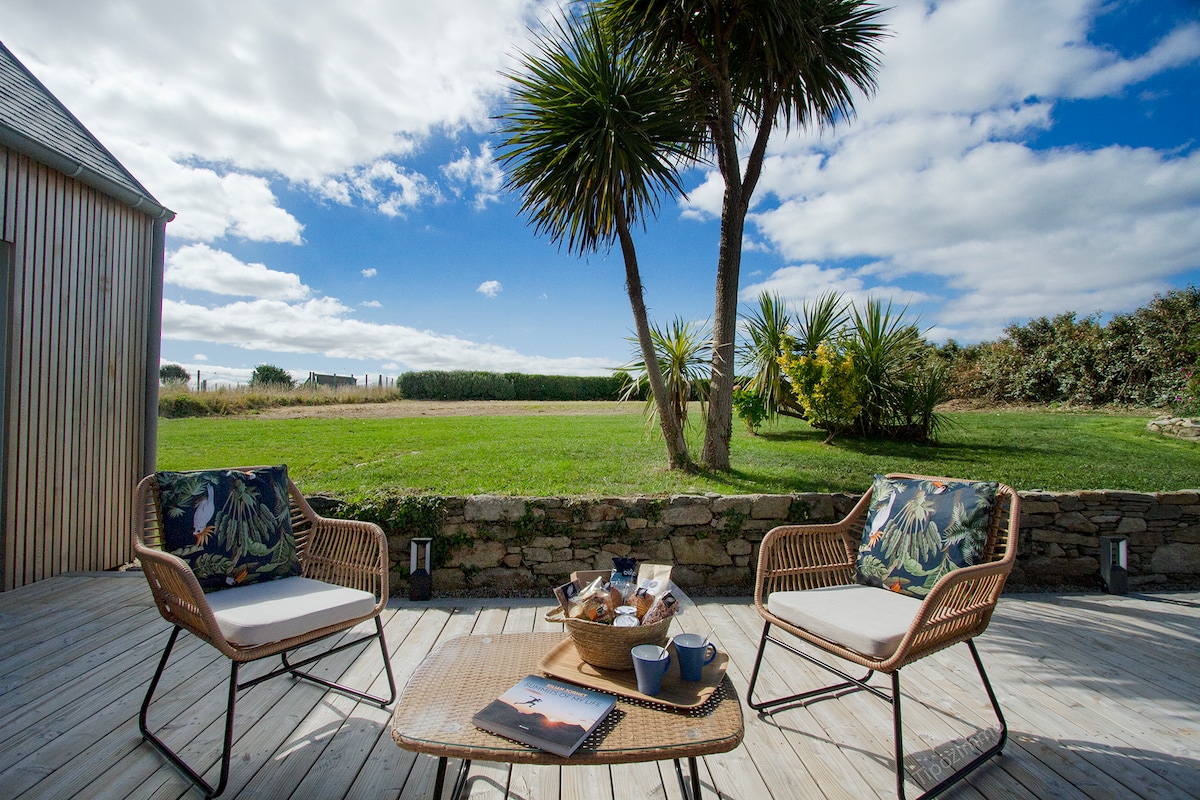 In the heart of the bay of Audierne, in a quiet environment, right at the entrance to the small fishing village of Penhors. Ti Marin, facing south with its large terrace will allow you to enjoy the relaxing setting. You will find the ideal calm to recharge your batteries in Finistère. Located 1 minute walk from the supervised beach of Penhors, provided by the CRS in July and August.