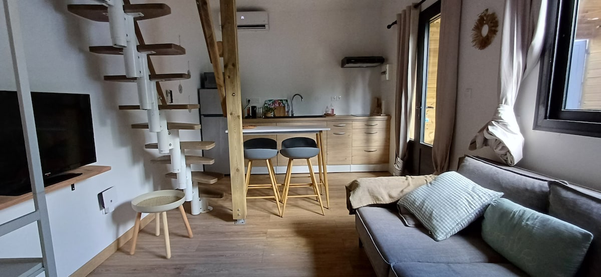 Enjoy the charming setting of this romantic accommodation 1 min from the lagoon, forest and shops (post office, Gabier, supermarket, bakery, grocery store, pizzeria, doctors, pharmacy, ice cream parlors, physiotherapist...) Linen, beach towels, air conditioning, internet, TV... provided 2 nights minimum
