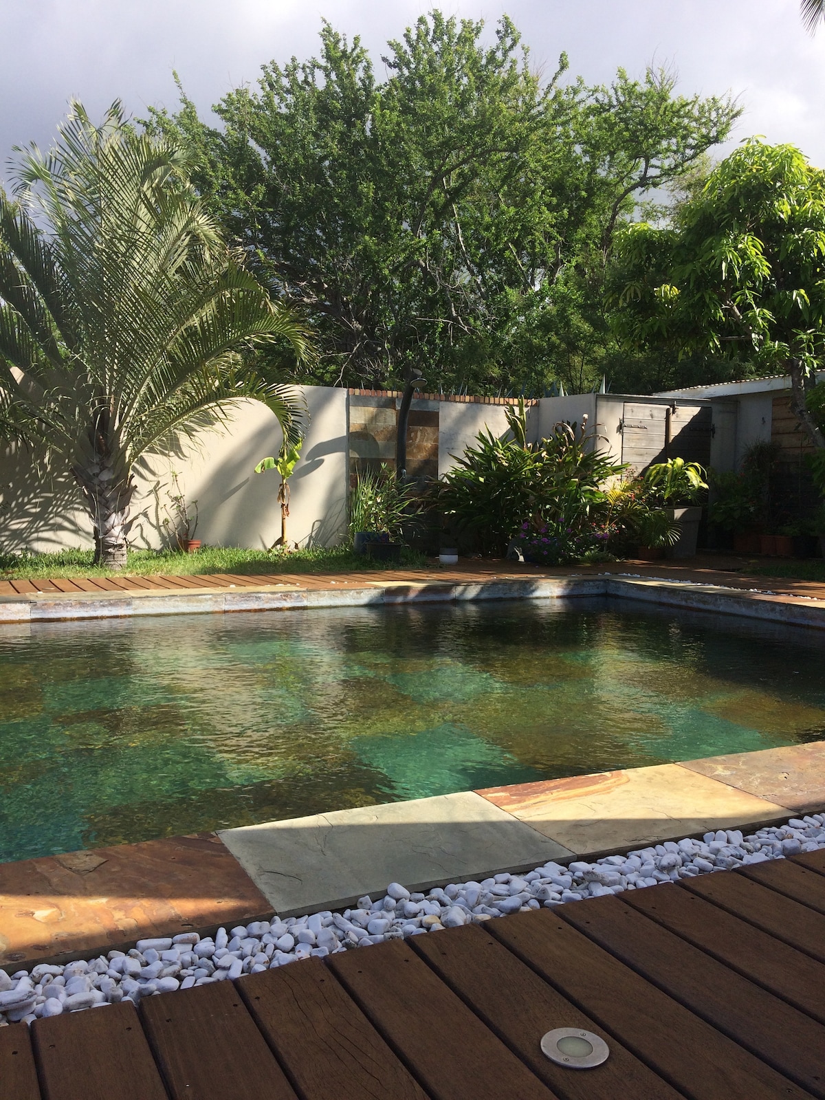 Just above Etang-Salé, between sugar cane fields and Creole neighbors, lies this new house in Moroccan and Balinese style. From the large pool to a tropical garden with more than 10 different palm trees and several sun terraces to the high-quality fitted kitchen, everything is available to make the vacation pleasant. After 30 years of city life on Kurfürstendamm in Berlin, we have created a place for all the senses here.