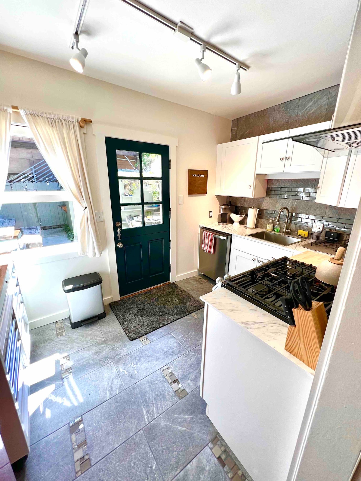Your favorite coastal getaway awaits! Live like a local in your own casita where you can bike to the beach, coffee, dinner, drinks, and catch the sunsets on the patio. Surf some of the most iconic spots nearby or spend the day lounging in the sun and sand. Come back to this rad space with its vaulted ceilings, full kitchen, living room, and outdoor patio. The Dutch door lets in the ocean breeze. Enjoy the perfect Southern California weather as you swing on the picture-worthy swings!