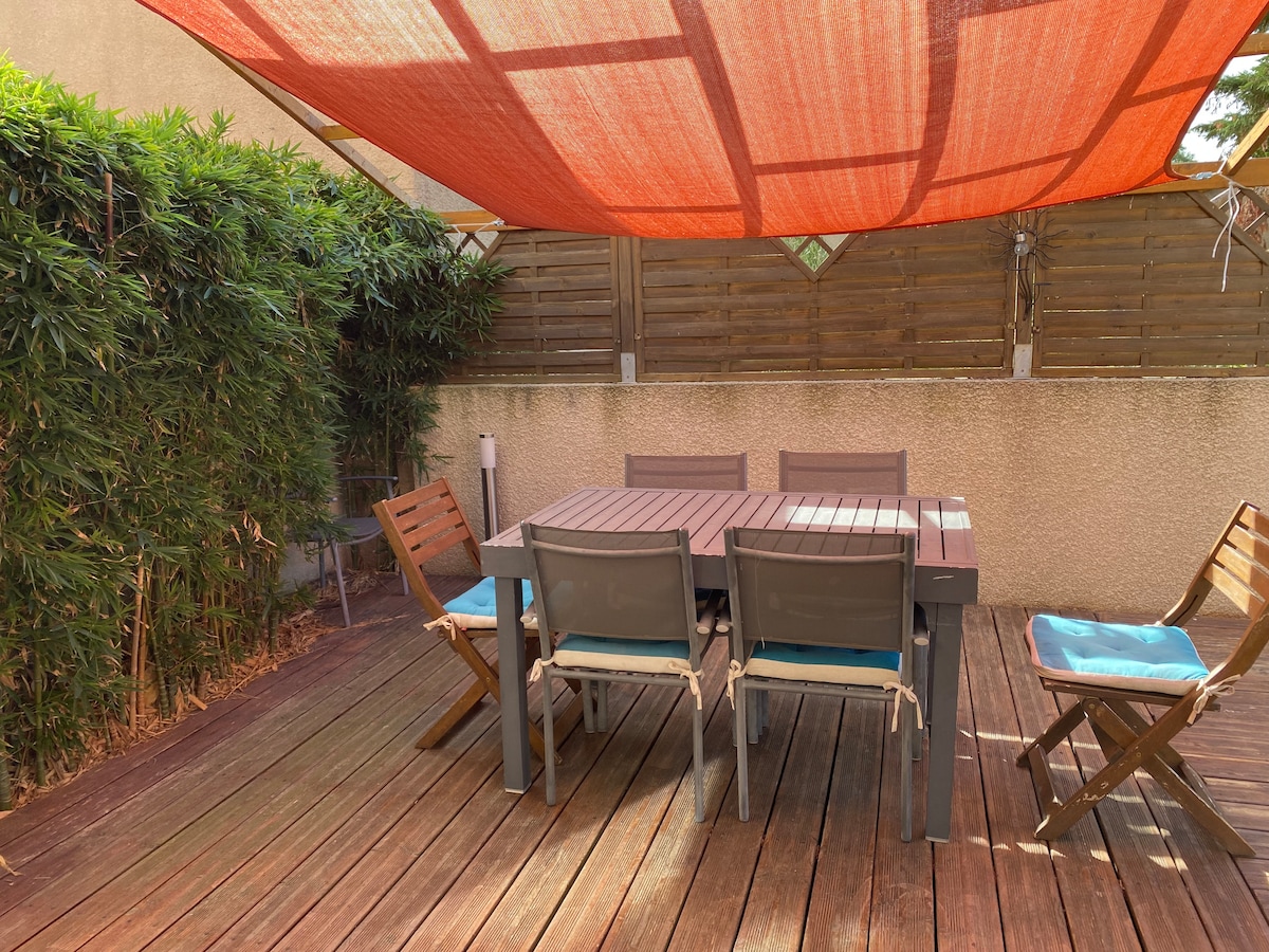 Elegant air-conditioned beach house 50 m from the sea, carefully decorated. Open-air living room for relaxing in the sunshine or under the stars, equipped kitchen for good meals, bathtub in the sleeping area (without curtain on the skylight). Respect for the premises is imperative (cleanliness, care, etc.). If you do not share these values, this pretty house is not for you, please do not book. This house is a place of peace and relaxation. Not suitable for infants