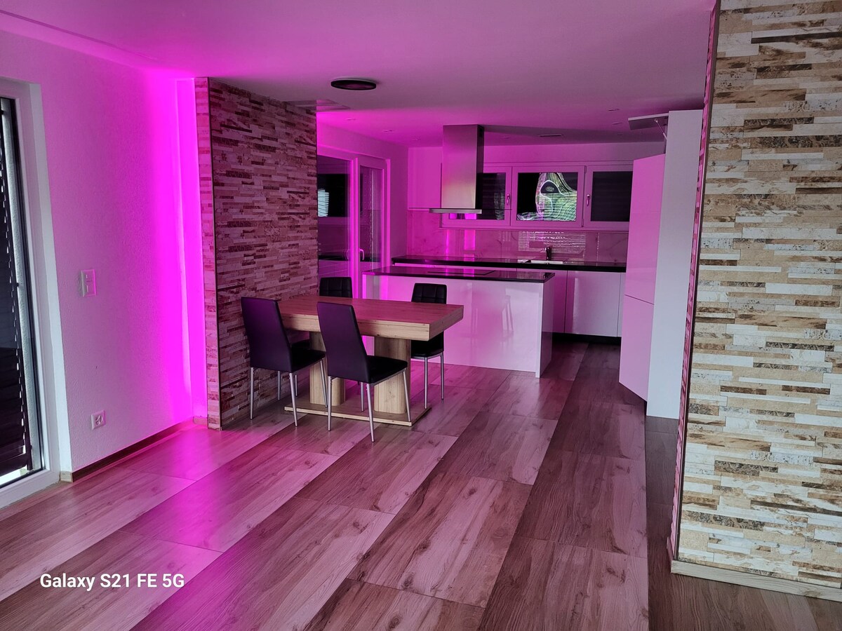 Our vacation home is located in a quiet neighborhood and is spread over two floors. Thanks to the good location, you can easily make trips to the Black Forest or Switzerland from our accommodation. Perfect for commuters is the Swiss border, which is 5-10 minutes away. The center of Lauchringen is a 2-minute walk away. There are shopping opportunities such as supermarkets, as well as restaurants and cafes. Nearest bus stop: 2-minute walk