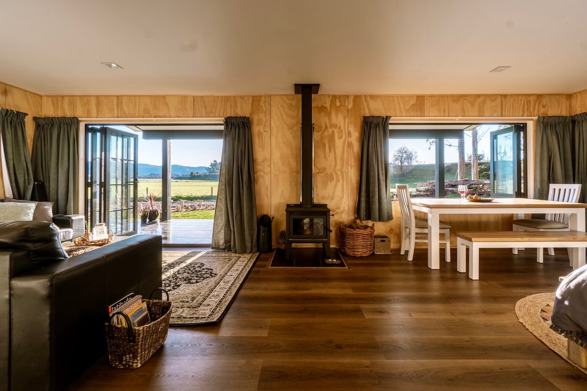Thoughtful, modern design makes Kingfisher Cabin a unique experience. We have created a private, luxury small home that gives you the space you need to comfortably remove yourself from the rush of every day life. Kingfisher Cabin is located just 10 minutes from Timaru and two hours from Christchurch and Dunedin. The cabin is set on farmland with a spectacular view of the ocean. The newly built cabin is exquisitely styled, with a restful and calming vibe.