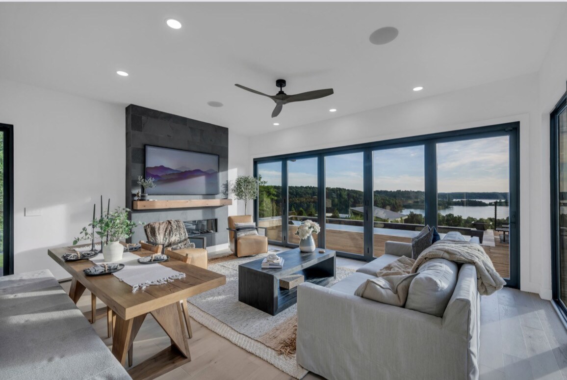 No detail was spared in outfitting this space, all with breathtaking lake views from nearly every window. The double slip dock is steps away, complete with SUPs, kayaks, an inflatable lily pad, plus a lift for your boat! Perfectly located within a gated, private hamlet with access to the hilltop community pool and clubhouse. Dockside delivery with pontoon rentals, Level 2 EV charger. Come see why we were featured in Architectural Digest, Birmingham Home & Garden and The Lakeside Life magazines!