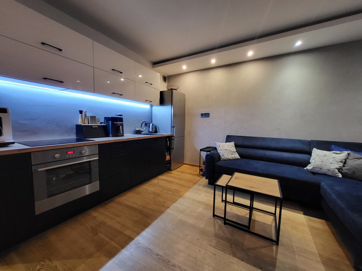 Nowoczesny 2-pokojowy apartament (47 m²) przy Galerii Bonarka. Sypialnia z wygodnym łóżkiem, salon z aneksem kuchennym + wersalka rozkładana, duży balkon. W pełni wyposażona kuchnia, Wi-Fi, Smart TV, łazienka z wanną i prysznicem. Idealny dla par i osób podróżujących służbowo. Blisko centrum, świetna komunikacja, restauracje, kino i sklepy tuż obok.