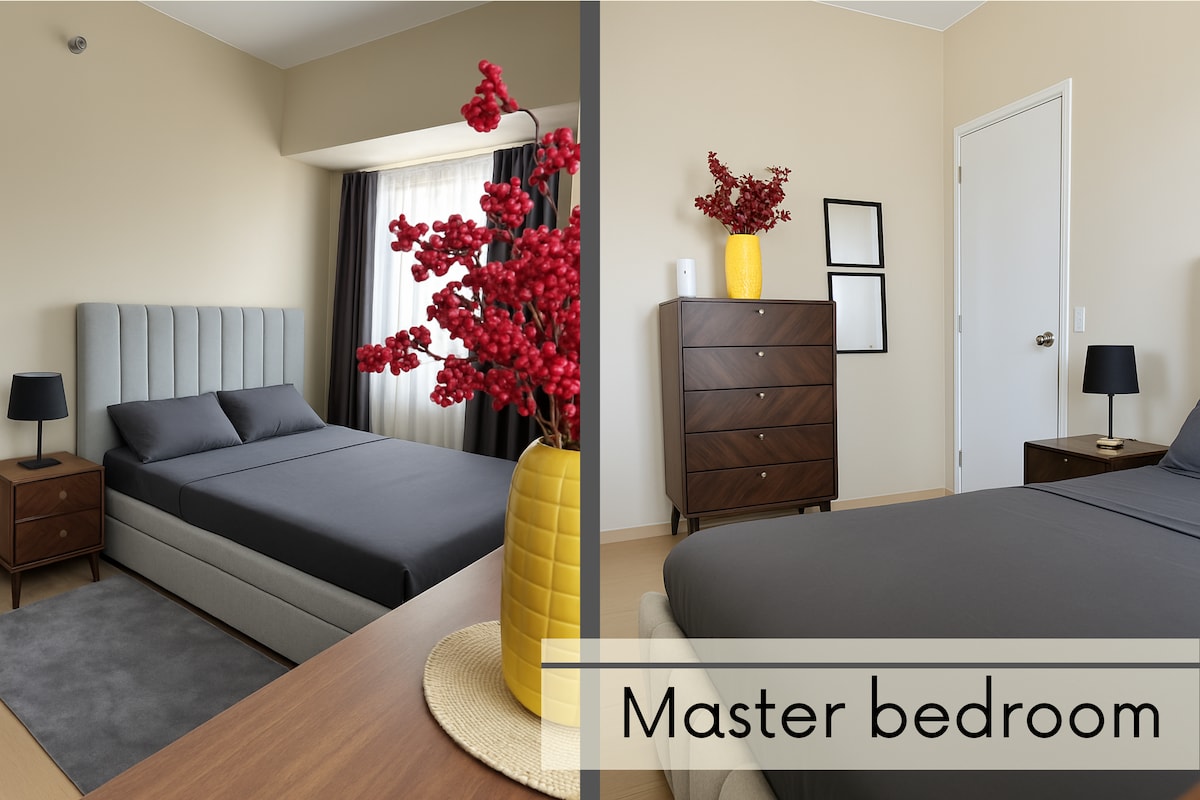 Relax in your cozy home away from home! This unit features a 65-inch smart TV with Netflix, Disney+, and Prime Video. The kitchen is fully equipped with an induction cooker, water dispenser, and rice cooker. Enjoy a refreshing shower with our strong water supply and heater. The spacious bedroom offers you a queen-sized bed and ample storage. Every detail is crafted for your comfort and a tranquil stay.