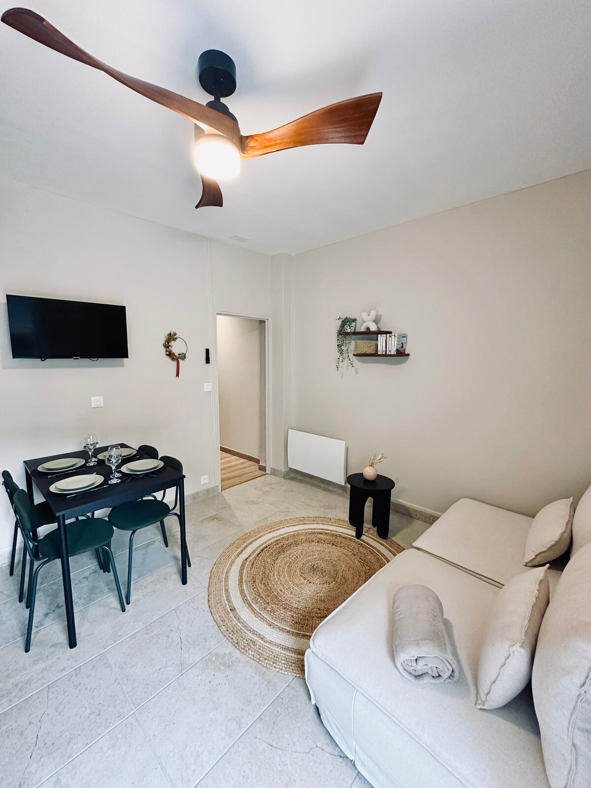 Spacious 75 m² apartment, tastefully decorated and fully air-conditioned. Located on a quiet street in the heart of the city, parallel to the pedestrian shopping street and close to the market and shops. Like a small independent house, it has a washing machine, dryer, and dishwasher in the kitchen. 5 min walk to the TGV/TER station for Bordeaux and Paris, and 15 min to Saint-Émilion. Free street parking Great for a stay combining comfort and practicality.