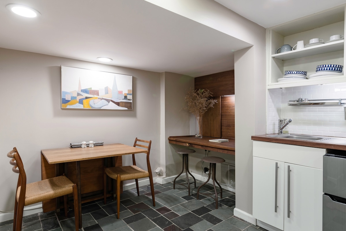 Beautifully remodeled modern apartment with fresh appliances and furniture, runs on clean energy, & a short walk to D.C.'s best attractions: The U.S. Capitol, Supreme Court, Union Station, National Mall & Smithsonian museums. You’ll love the historic walkable neighborhood and proximity to restaurants, cafes, parks, nightlife, Eastern Market and public transportation. This is a private basement apartment, I live in the home upstairs. Ideal for couples, solo adventurers & business travelers.