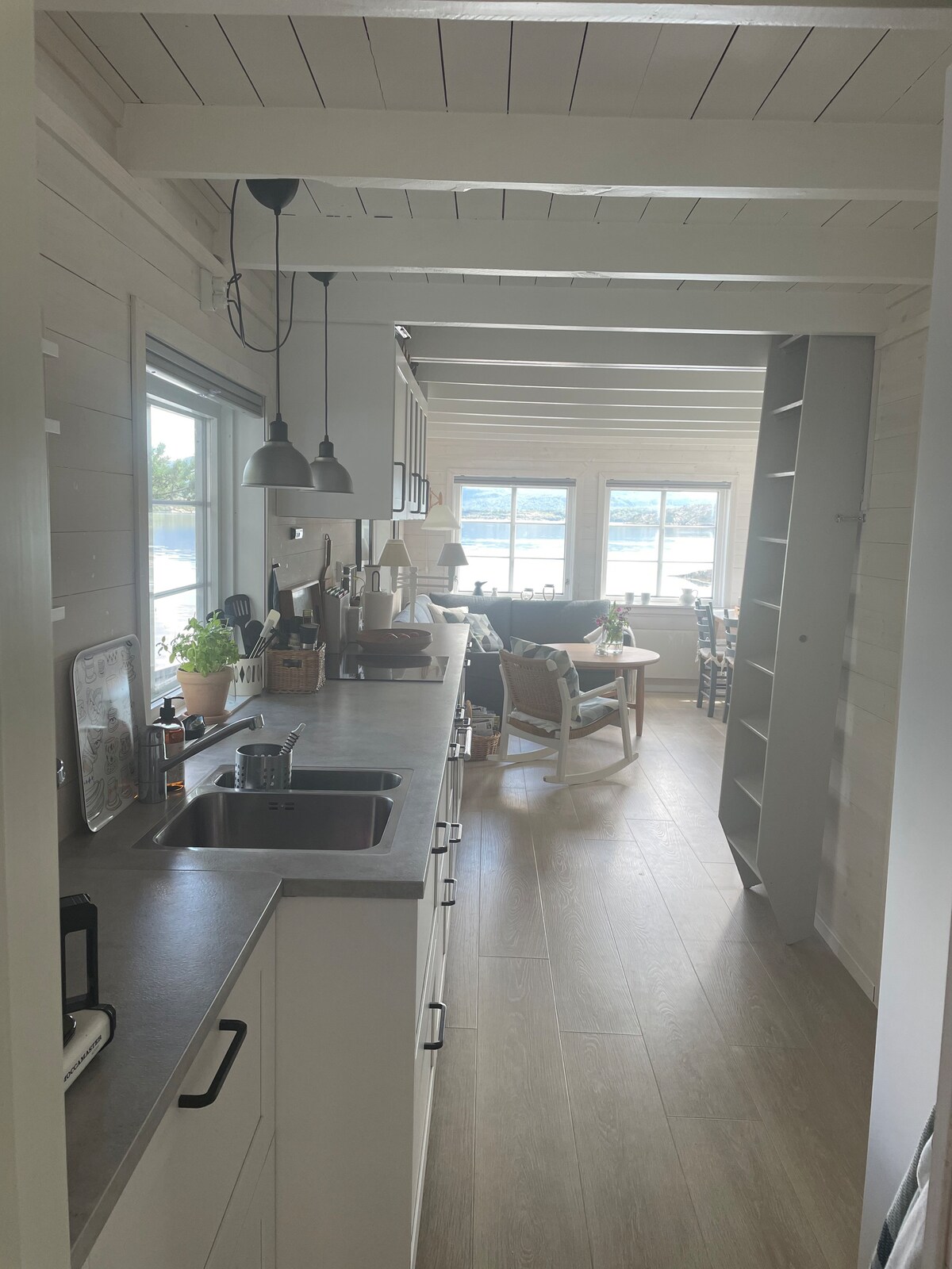 A stylish, romantic and cozy little mini house with a magical view of the fjord and the garden below. Here you can enjoy coffee on the terrace at sunrise and splash your toes in the sea in a beautiful sunset from the jetty. We can offer SUP boards, sauna and kayak rental. Then everything will be available from the jetty, so you can just enjoy the holiday Here you can walk straight from the bed up to the most beautiful peaks and then go down again and take a swim in the sea.
