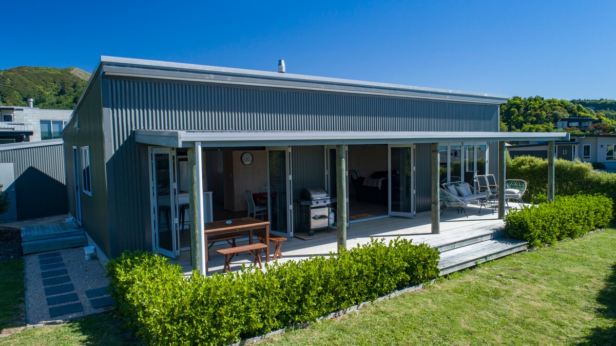 Stunning beachfront home, right on the beautiful beach of Parapara, Golden Bay. The beach is literally a few steps from your door. Let the sound of the waves lull you to sleep and wake up to a beautiful sunrise over the ocean. Enjoy your warm sanctuary to hibernate and rejuvenate with unlimited wifi, smart TV and cellphone coverage, or have an action filled day on the beach, in the ocean or exploring the local native bush walks. Truly blissful - you won't want to leave your little haven!