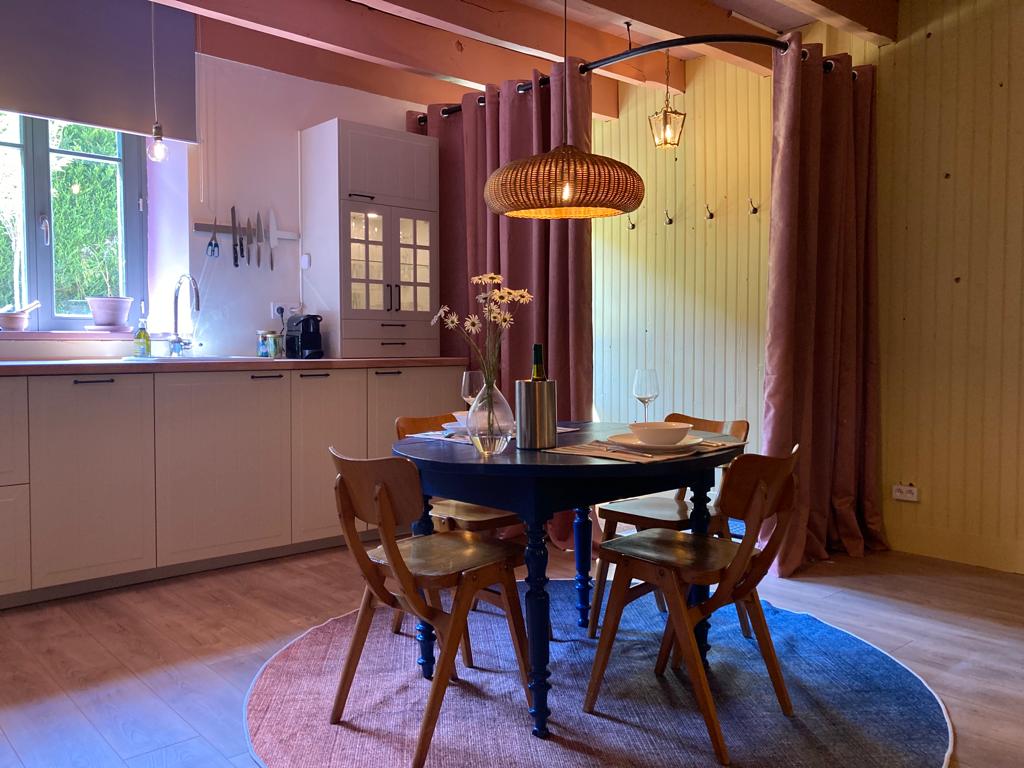 Nestled on a 1.6 hectare property, you will discover a pond, a vegetable garden, a flower park, our animals (dogs, cats, goats, chickens) but also ruins and a piece of land in fallow, all bordered by a stream, for adventurers. The cottage is completely independent with its entrance, parking, garden with terrace, fenced