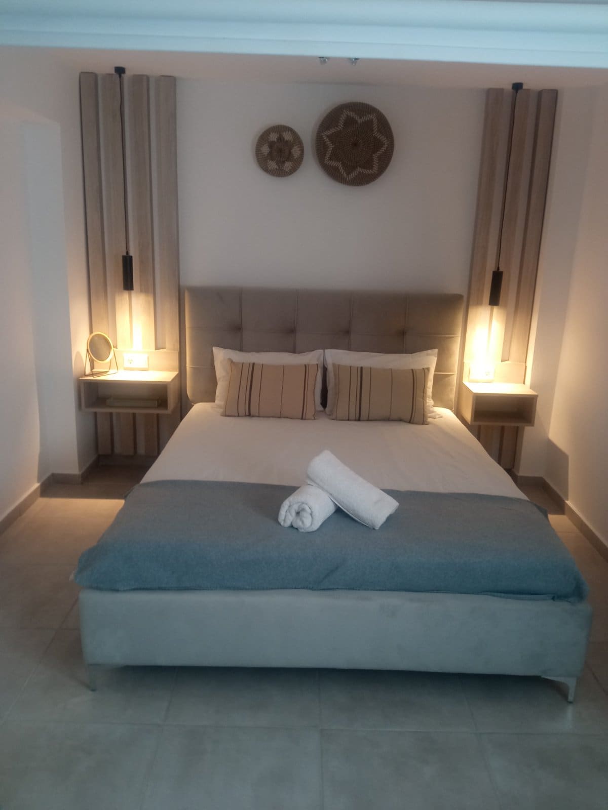 This Private suite has fantastic sea and mountain views. It has a kitchen, all utensils, a bathroom, a big living room, large private balcony with marvelous views. Very private, comfortable, and stylish. You will feel at home. With the amazing sea view. Quiet retreat away from the bustle, 7 min walk to amazing Almyrida sandy beach, shops, and restaurants. The best taverna with homemade food a few steps away. 7olivescrete Close to Samaria gorge, Balos, Elafonisi beaches, Chania and Rethymno.