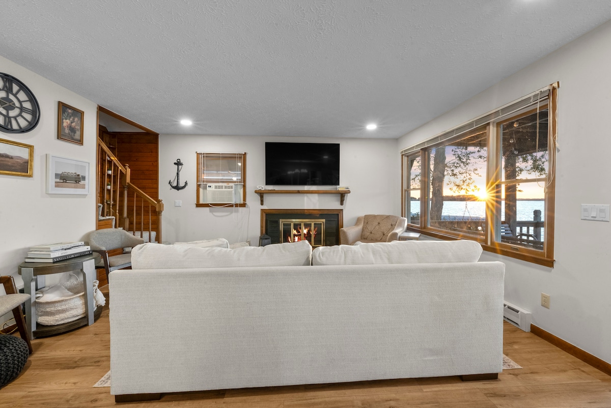 OPEN YEAR ROUND! Quiet & Cozy Lake House Cottage on Tecumseh Island Channel! Dock included! Perfect get away for groups of all sizes! Best Location on the Lake, Great Views all around! Beautiful remodel, stylish decor. 3 Bedrooms, comfortably sleeps 10! Quartz Counters, Recessed Lighting, Electric Fireplace. Amenities include Sleeper Sectional, 4K HD TVs w ROKU. High-Speed Internet, Keurig Coffee Maker w/ Complimentary K-Cups, Microwave, Refrigerator, Oven/Stove, Fully Furnished Kitchen.