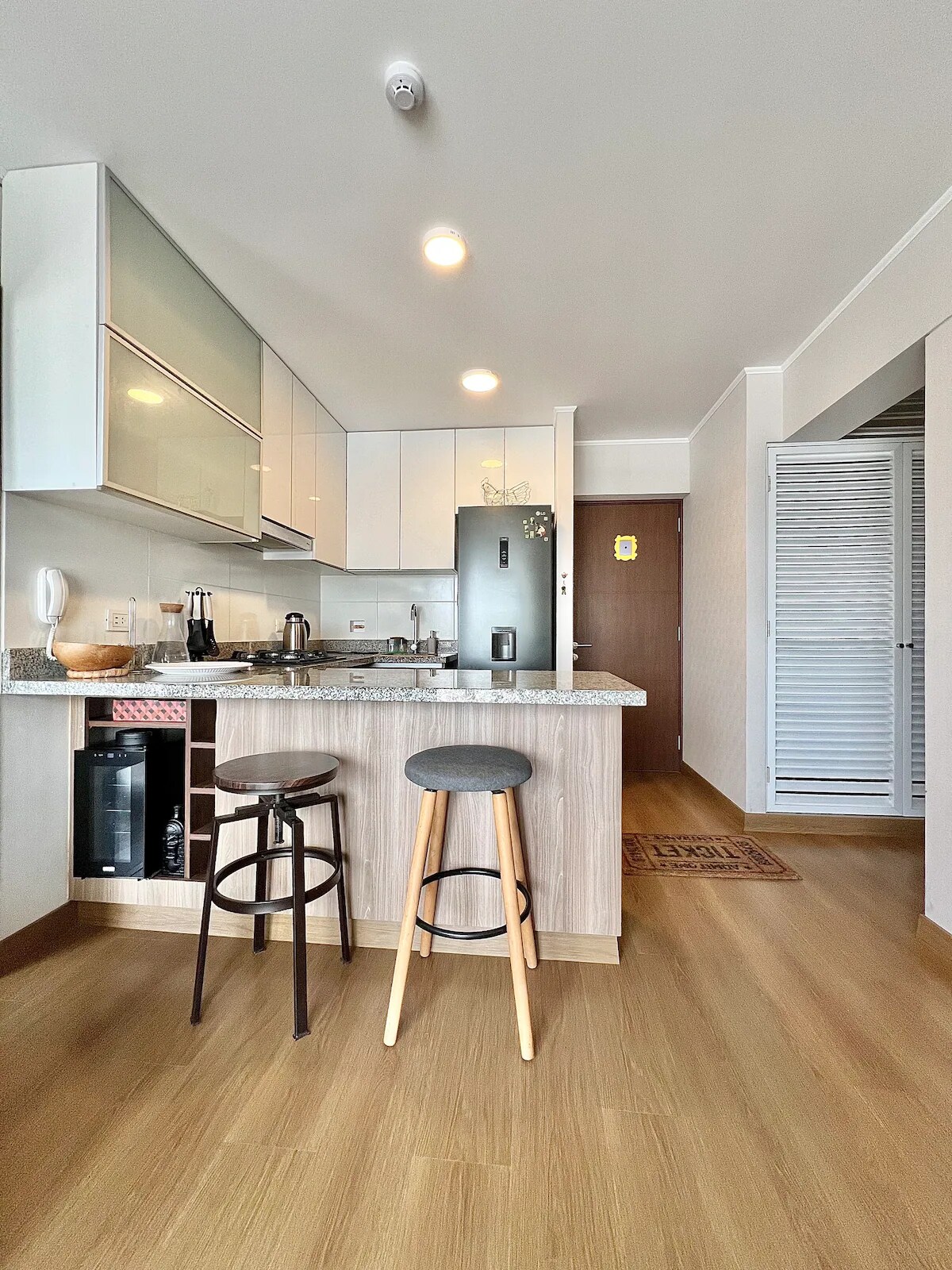 Unique experience in Lima, this modern 440 square feet and one-bedroom apartment in Barranco is perfect for you. Strategically located across from the MoMA Museum and Barranco's monumental area, and close to the vibrant Miraflores district, this space is perfect for vacations and business trips. Just a 5-minute drive from the beach and surrounded by cafes, restaurants, and bars, Barranco offers a perfect blend of culture, entertainment, and a relaxed atmosphere.