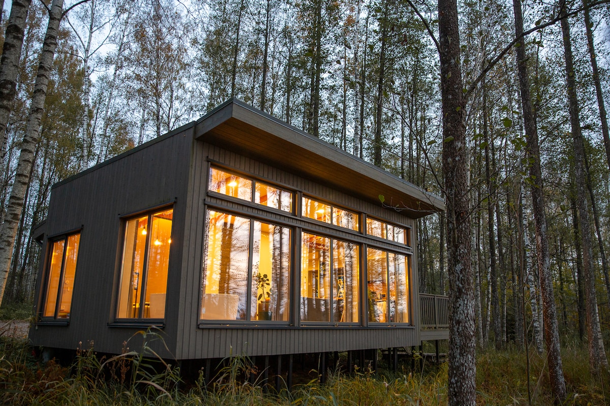 A cabin for two to enjoy the nature and the nearby sea (900m walk from a sandy beach), located 28km from Riga, just outside of the town Saulkrasti. Wide windows to enjoy the scenic surroundings, and in the evenings you may choose to opt for our recreational options (at an additional fee) - an outdoor hot tub and a sauna (hot tub 60€, sauna 60€, sauna with traditional sauna whisks and a body scrub 80€). The place can be reached on foot from the nearby train station or bus stops, or by car.