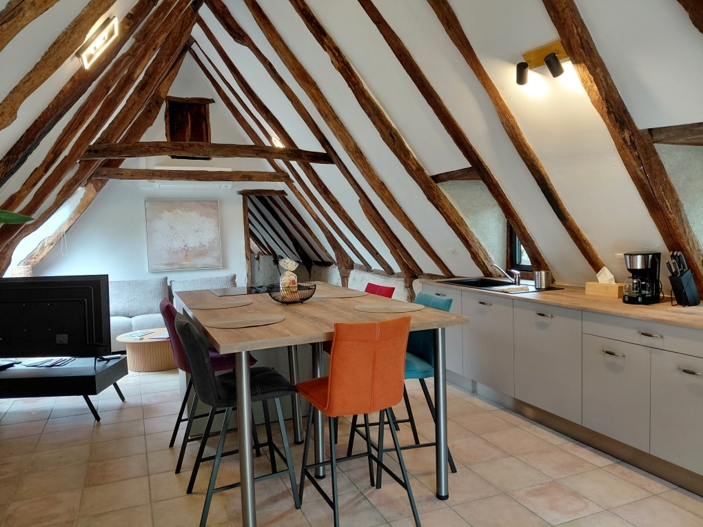 Experience a completely renovated gariotte, in the heart of nature, in a warm and cozy atmosphere. Ideal for two lovers, this house seduces with its authenticity, comfort and bucolic setting. Enjoy a private, wooded space, perfect for unwinding, relaxing in the shade. Let yourself be lulled by the tranquility of the place. A mezzanine combines the charm of exposed stones with natural wood. A modern kitchen. Relax in the private Jacuzzi.