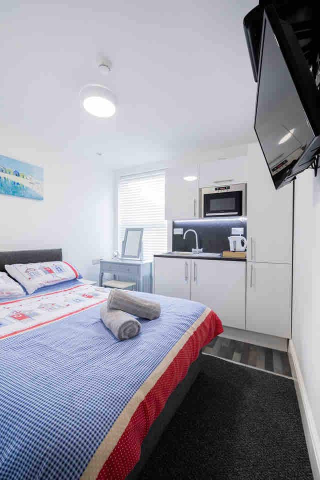 Superior room with ensuite and kitchenette including microwave and fridge,large tv with virgin media package to include sky sports.Free WiFi,virgin media and sky internet.use of main kitchen with laundry facilities