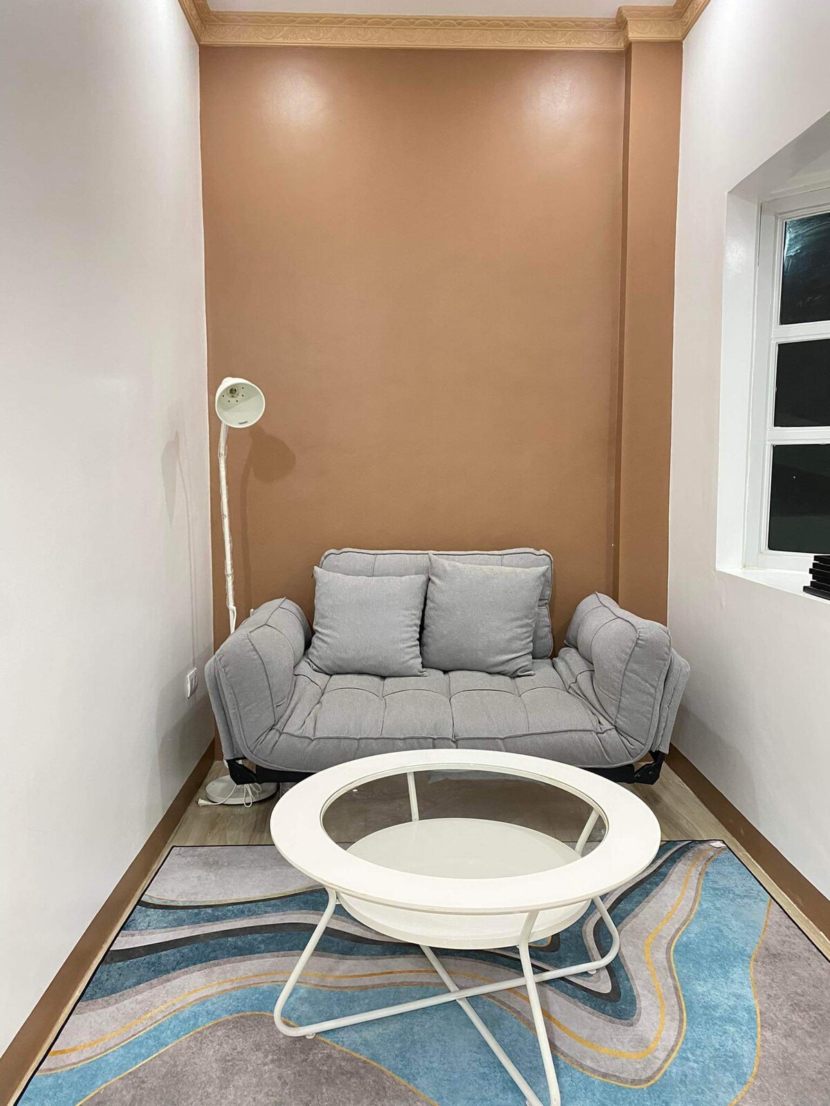 You’ll be charmed by this adorable place to stay. This room has its own kitchen , bar counter, mini fridge, karaoke, disco lights, hot and cold water dispenser and is equipped with 100-inch monitor.