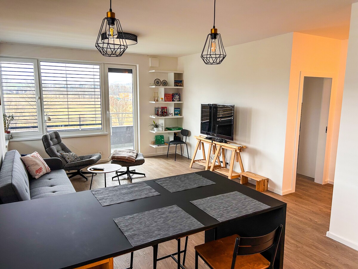 Modern apartment overlooking the mountains right in the center. The apartment is freshly renovated, situated on the 10th floor (with an elevator), which guarantees peace and at the same time a wonderful panoramic view of the mountains. The apartment is perfect for a couple, family and a smaller group of people. Located right in the city center - everything you need is at your fingertips – shops, cafes, restaurants. Bus and train station just across the road, city center 5 minutes walk. If you are looking for comfort, location and views, this apartment is perfect for you!