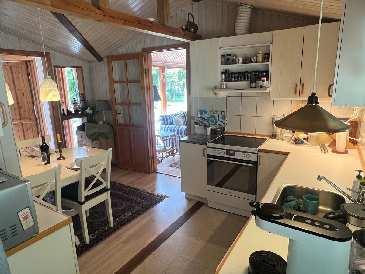 A special summer home at the end of a cul-de-sac with direct access to a private beach and sea views in the first row. With a view of the water from all rooms and living rooms A charming and original summer home from the early 1900s in peaceful surroundings with plenty of space. Private parking space. Perfect as a family home. Walking distance to grocery store, restaurants and ice house.