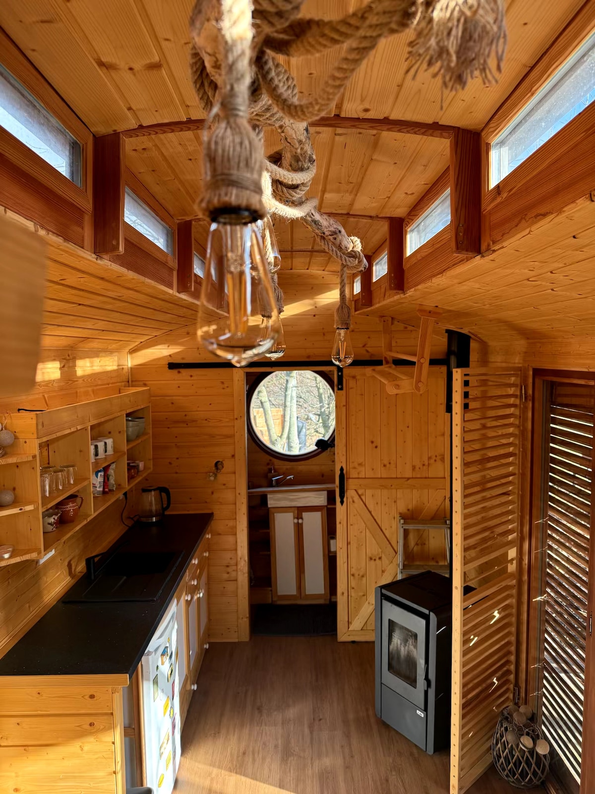 Come and relax in our caravan on the farm in the middle of the beautiful nature of the Czech Highlands. Stop time, take a break from the daily hustle and bustle and recharge your batteries in a quiet rural environment. Our caravan offers everything you need – in winter you will be warmed by the fireplace, in summer you will enjoy the shade of deciduous trees. If you want, you can participate in our farming life. You will taste fresh goat cheese, prepare homemade eggs for breakfast and go for a walk around Kletečná.