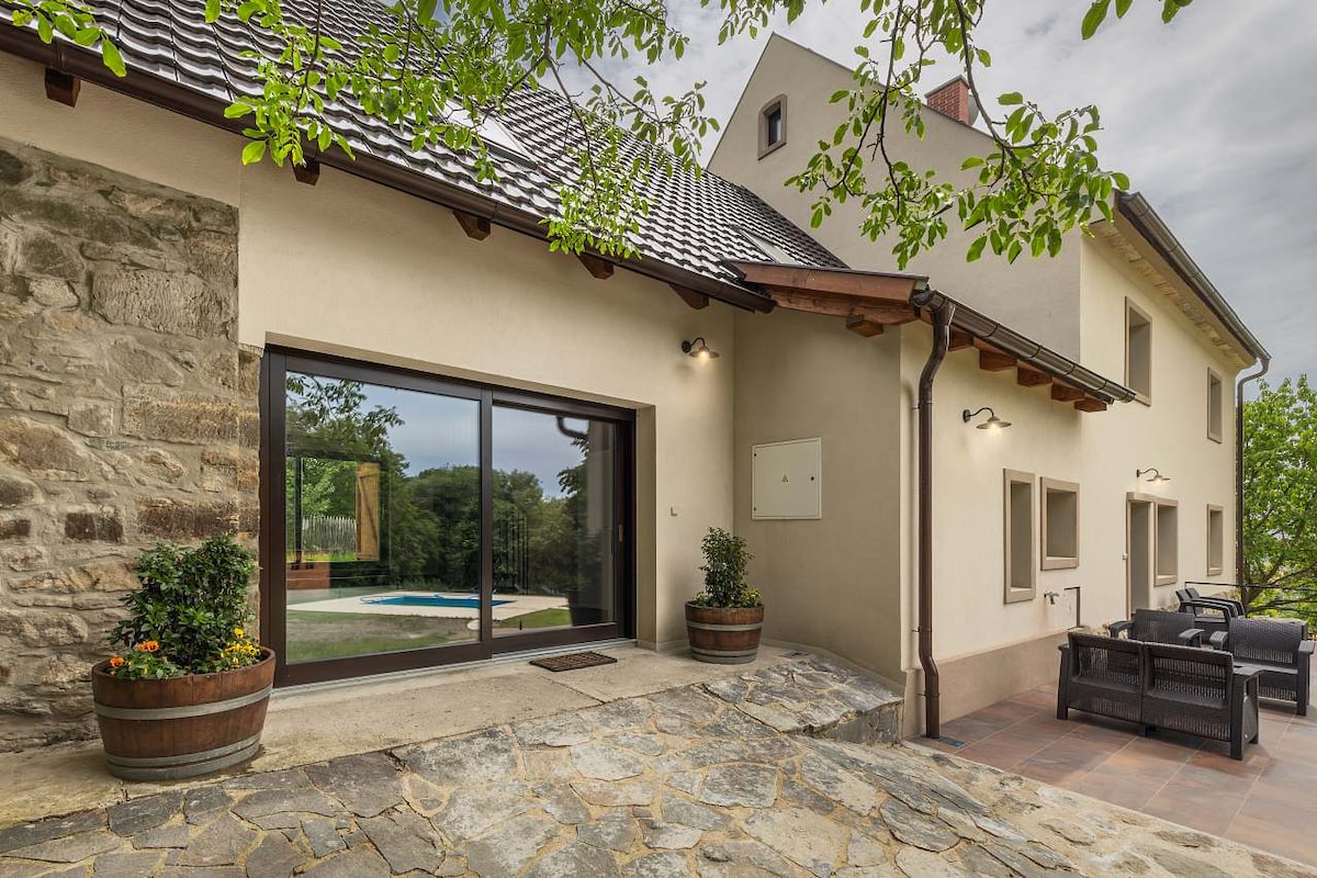 A breathtaking view of the northern Bohemian hills, immersed in the most authentic Czech countryside. A few steps from the woods, our guests can enjoy a private SPA and wellness. From the Jacuzzi they can enjoy the view of the private garden while sipping the wines that we produce ourselves. We also offer a breakfast service (buffet) to be booked at least 2 days in advance or on request (price not included in the cost for accommodation). The breakfast room is located 300 meters from the cottage.