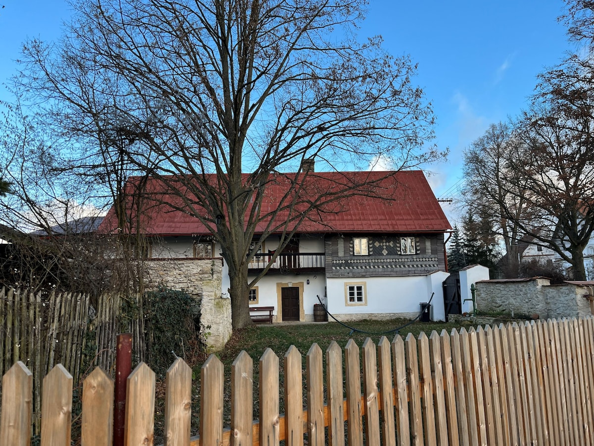 An exceptional stone cottage on the village square in the village of Bílka with a unique view of Milešovka - the Queen of the Czech Central Highlands. You won't find a better view of the Chapel of St. Wenceslas than from the window of our house. From the cottage you can go not only to Milešovka, but walk the inspirin Path of Friendship. The sun rises in the bedroom, all day it revolves around the house and Milešovka and you can watch the sunset from a large family table during dinner.
