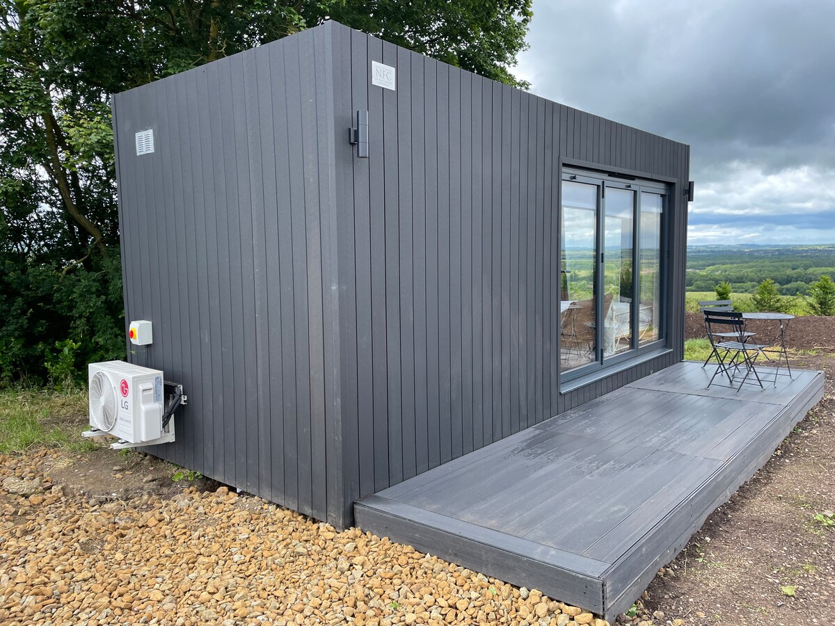 Be captivated by the sensational views across the North Cotswolds to the Malverns Nestled on the edge of Burton Dassett Park this tiny house is set at the stables amongst the animals at the Grove, with Llamas, Alpaca, horses & sheep on show around the estate This deluxe tiny container house features a standard double bed, full shower room and kitchenette. Blinds provide privacy The property is fairly close to the motorway so some road is possible when outside dependent on weather conditions.
